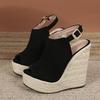 Liyke Size 34-42 Black Women Platform Wedge Sandals Summer Fashion Peep Toe Buckle Strap High Heels Ladies Shoes Sandalias Mujer