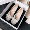 Single shoes women's new rhinestone bow square head flat shoes shallow mouth soft sole Doudou shoes large size