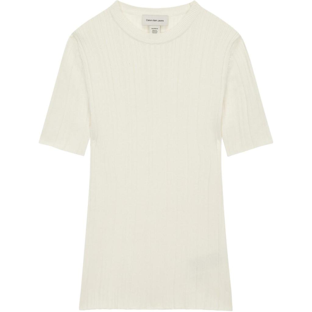 Calvin Klein Solid Color Round Neck Slim Fit Short Sleeve Knit Top Women tops Ivory 47B361GYAS