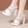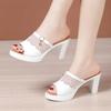 8cm 10cm Small Size 32-43 Cutout Mesh Leather Slippers Women Platform Shoes 2025 Summer Block High Heels Slides for Office MOdel