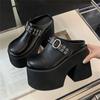 Designer Roman Platform Belt Buckle Women Slippers Fashion Thick Bottom Square High Heels Party Dress Female Shoes