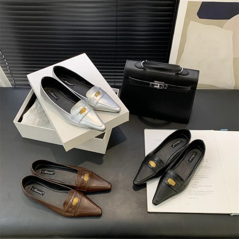 2024 Spring Autumn New Fashionable Flat Bottom Single Shoes Small Square Head Metal Low Heel Women's Shoes