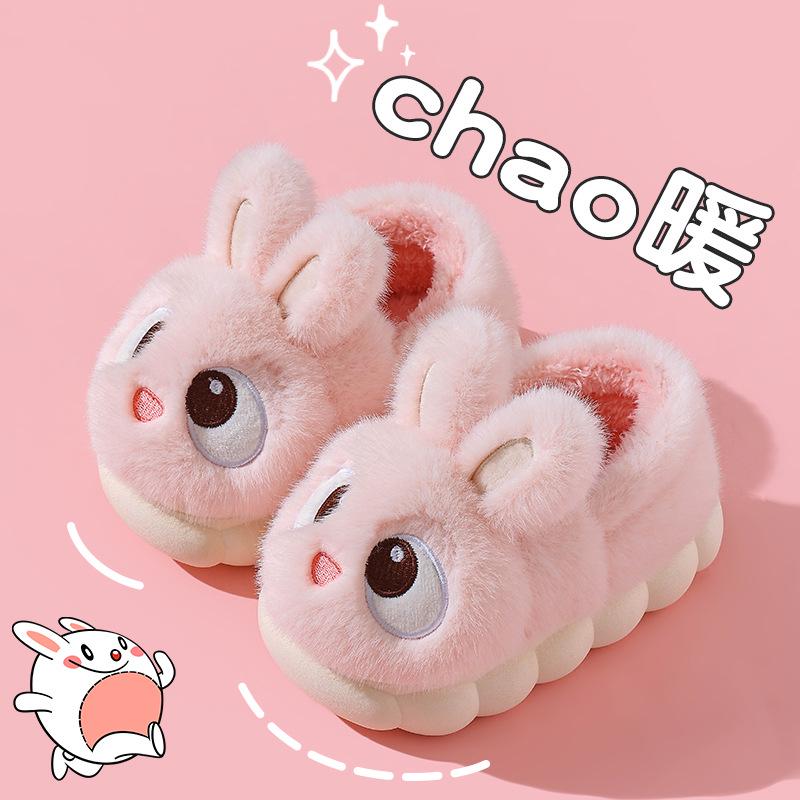 2024 Cozy Velvet-Trimmed Girls' Heel-Covered Winter Slippers, Cute Furry Design, Parent-Child Matching