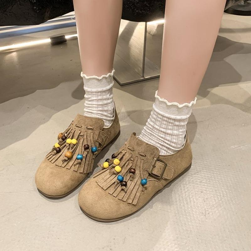Beaded tassel fashion women's autumn and winter flat-bottomed bag head casual shoes retro with skirt lazy shoes