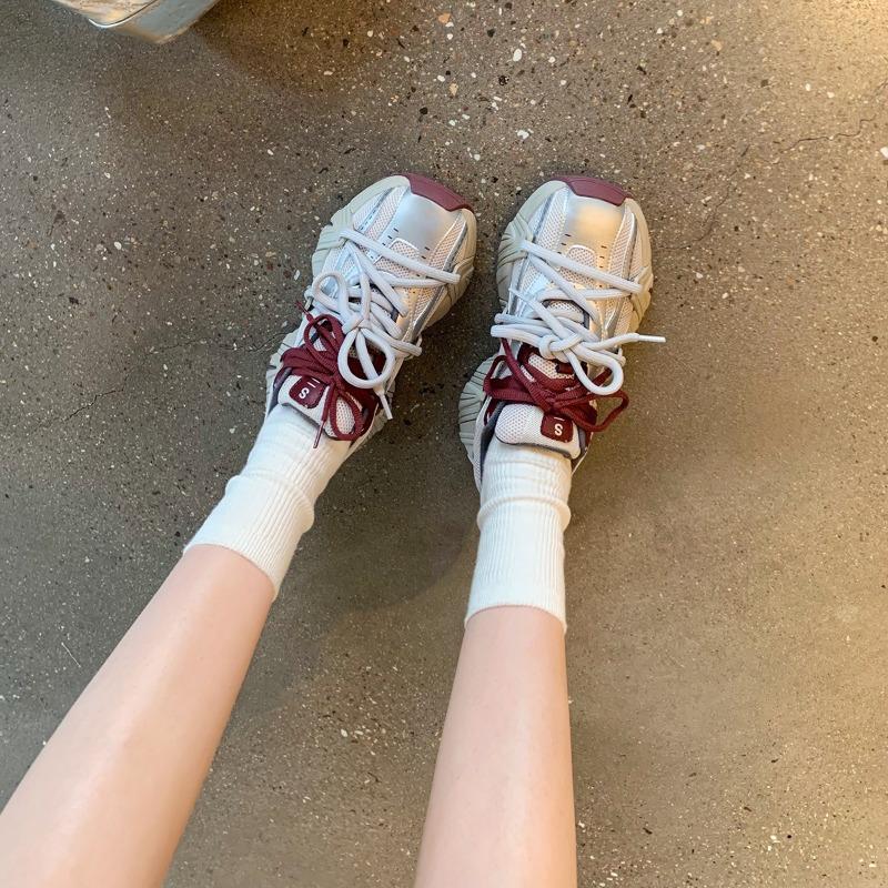 ~ Pictorial girl, fashionable pair of shoelaces, mesh splicing, thick-soled heightening dad shoes