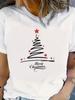 (Asian Size) Tee Top festival Merry Christmas New Year Holiday Casual tree cute 90s Women Print Lady Short Sleeve Fashion Graphic T-shirts