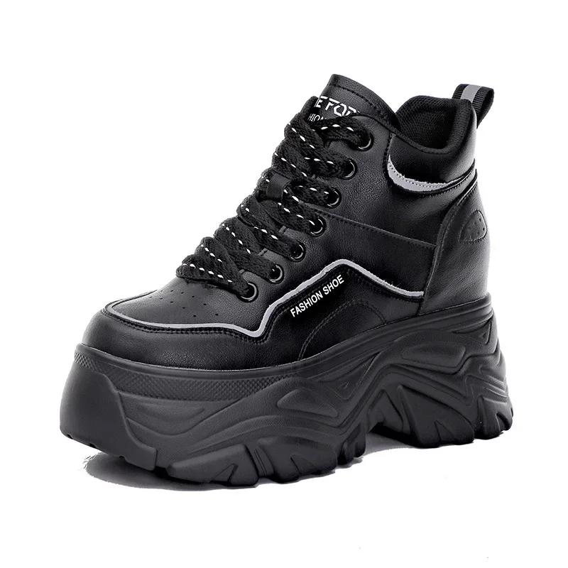 Fashion Women Ankle Boots Autumn Genuine Leather Shoes Woman Platform Height Increased Sneakers 8CM Thick Sole Wedges Snow Boots Winter