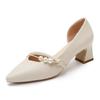 Leather French single shoes women's summer pointed middle heel thick heel late evening wind fairy shoes gentle small high heels
