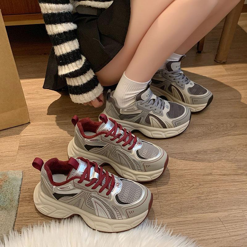 2025 spring new small sports shoes ultra-light thick-soled heightening casual shoes women's comfortable Ankola red dad shoes
