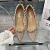 Inner height increase of 5 cm Spring and Autumn rivet single shoes women's French shallow mouth patent leather pointed versatile temperament commu