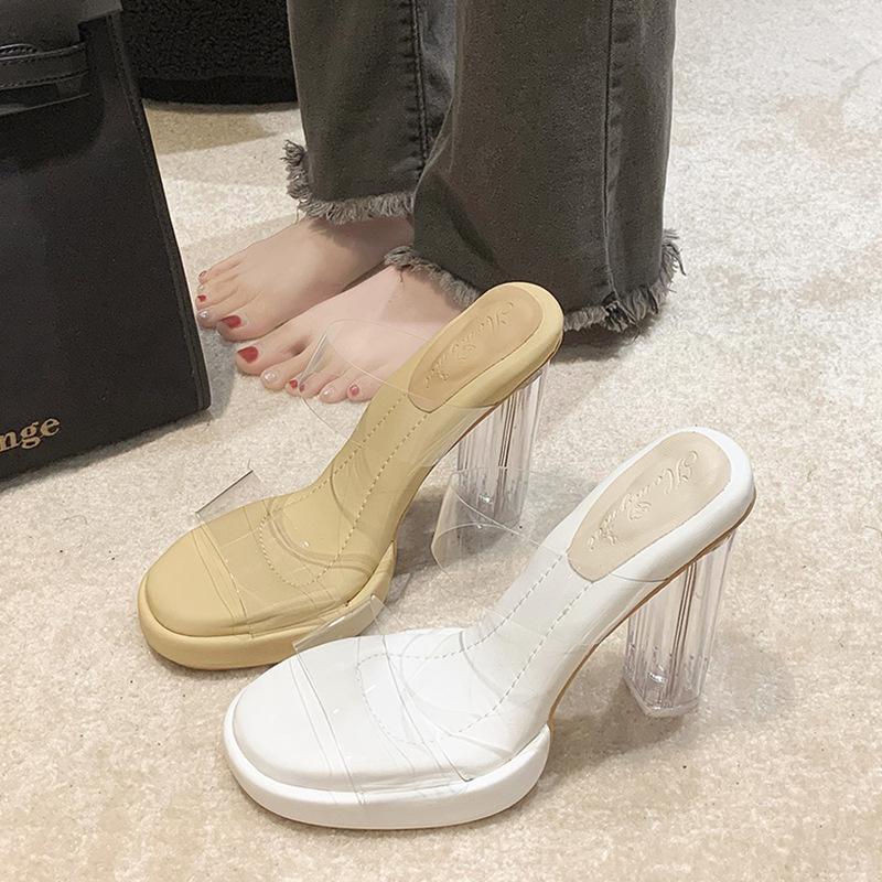 Small people are not tired of high heels women's sandals summer new transparent design crystal cool slippers outside