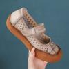 Women’s Genuine Leather Comfort Flats Hollow Mary Jane Shoes Lightweight Soft Hook Loop Nurse Shoes Woman Strap Moccasin