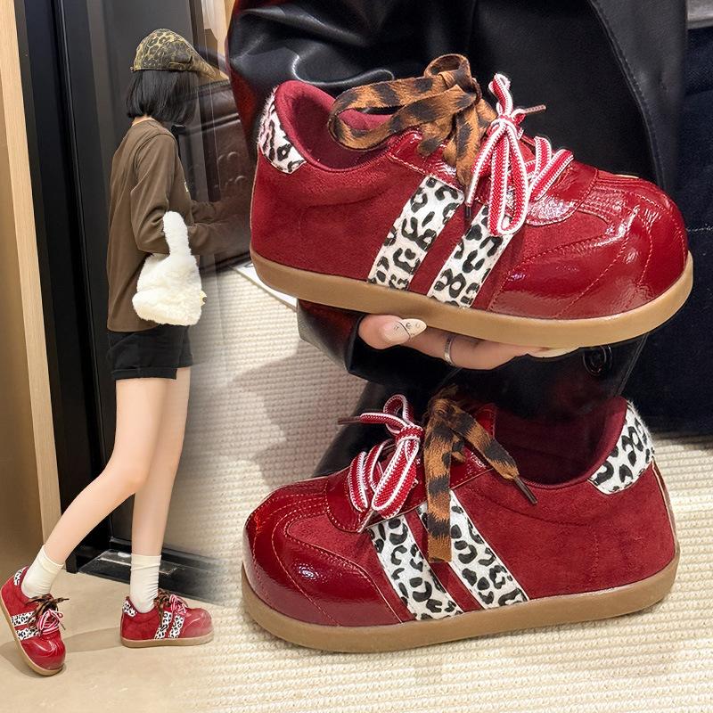 Maillard leopard print German training shoes women's autumn 2025 new big head shoes inner height increase casual board shoes