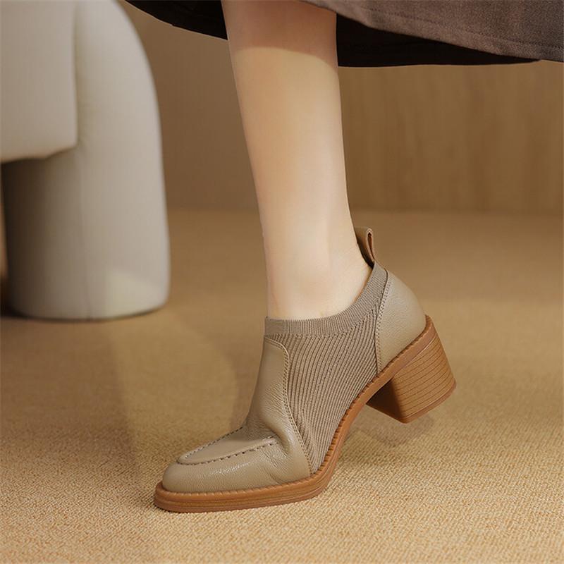 Fashion 2024 New Spring Sheepskin Women Shoes Pointed Toe Women Pumps High Heels Slip-on Loafers Shoes for Women Casual Knitted Shoes