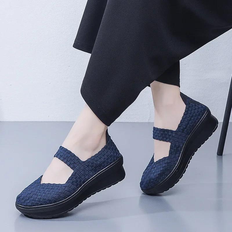 Fashion Summer new handmade woven shoes mesh shoes breathable sloping heels increased height thick sole casual women's shoes
