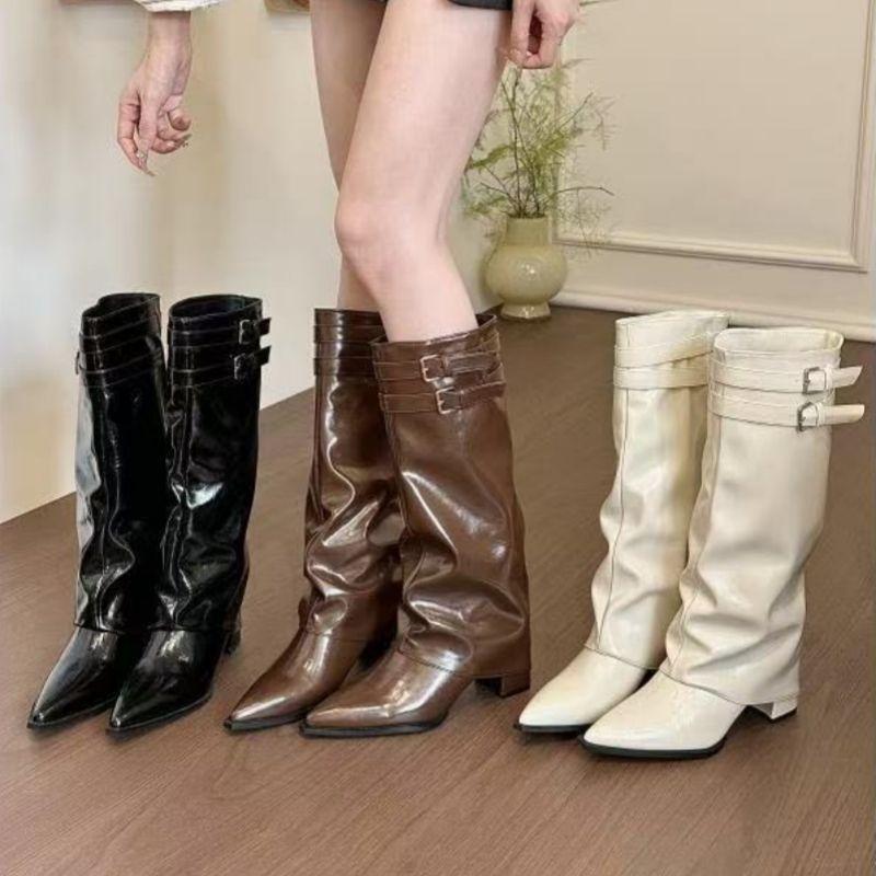 Fashion versatile and comfortable but knee-length boots autumn and winter new thin pointed thick heel high boots children