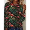 Autumn Winter Long Sleeved Top 3D Printed Women's Colorful Mushroom Print Fashionable Loose Daily Casual Pullover