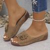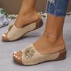 Foreign trade large size women's shoes 2025 spring and summer new slope heel open-toed outer slippers women European and American cool slippers women