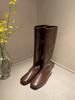 Cowhide version~ grape ma same inner height increase 4cm versatile square round head flat bottom inner height increase boots medium tube knight boots