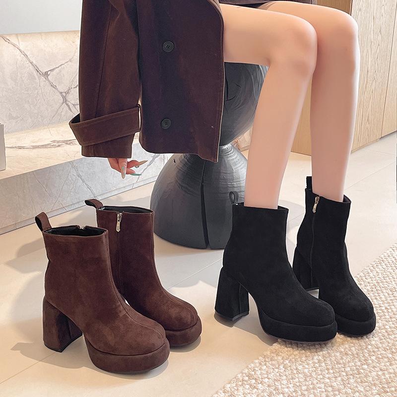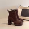 Retro temperament suede high-heeled short boots autumn and winter Korean version French fashion versatile thick heel thin boots women's Martin boots