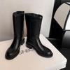New women's leather boots round head versatile large size women's boots medium heel round head rubber platform high boots leather knight boots