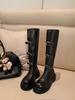 Cowhide Grape Mom 6cm Thick Sole But Knee Boots Women's Autumn and Winter Belt Buckle Skinny Boots Western Knight Boots