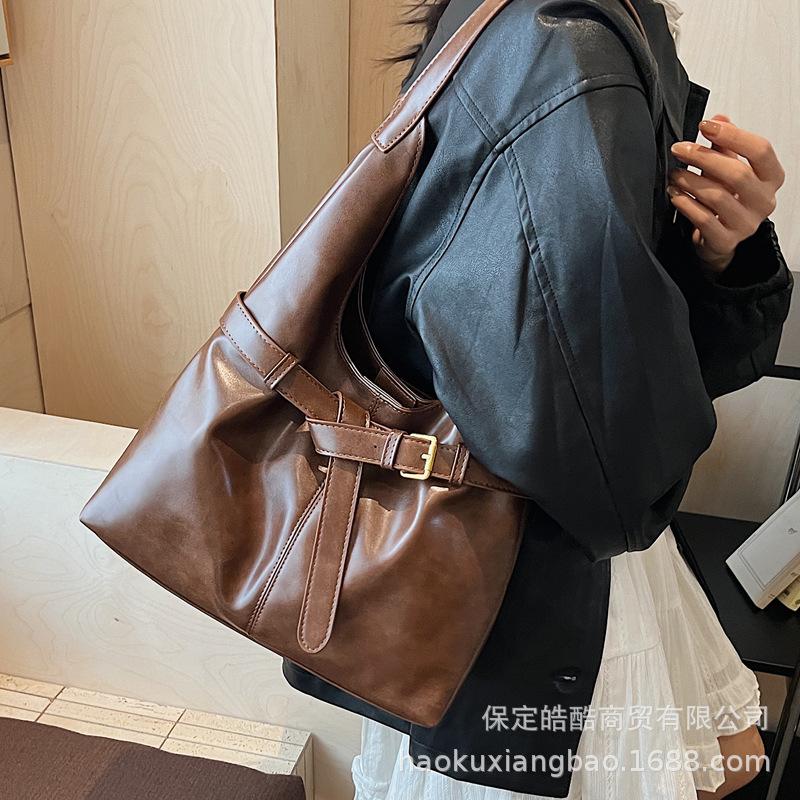 Retro bag women's large capacity 2025 new autumn and winter versatile simple shoulder bag popular commuter tote bag this year