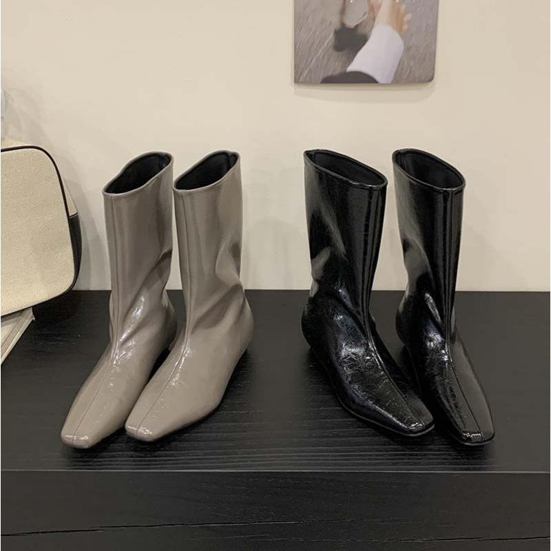 2025 autumn and winter new fashion versatile retro square head thin wide tube knight boots retro versatile wedge heel
