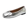 2024 Fashion Solid Color Square Toe Women's Shoes Spring and Autumn Shallow Mouth Slip-On Versatile Pleated Flat Women's Shoes