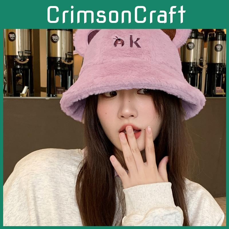 Ear Ok Bear Letter Embroidery Plush Fisherman Hat Bucket Cap Sun Protection