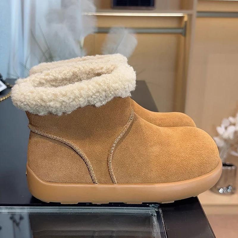 Real fur integrated snow boots women's winter new piled thickened cotton shoes thick-soled warm short boots