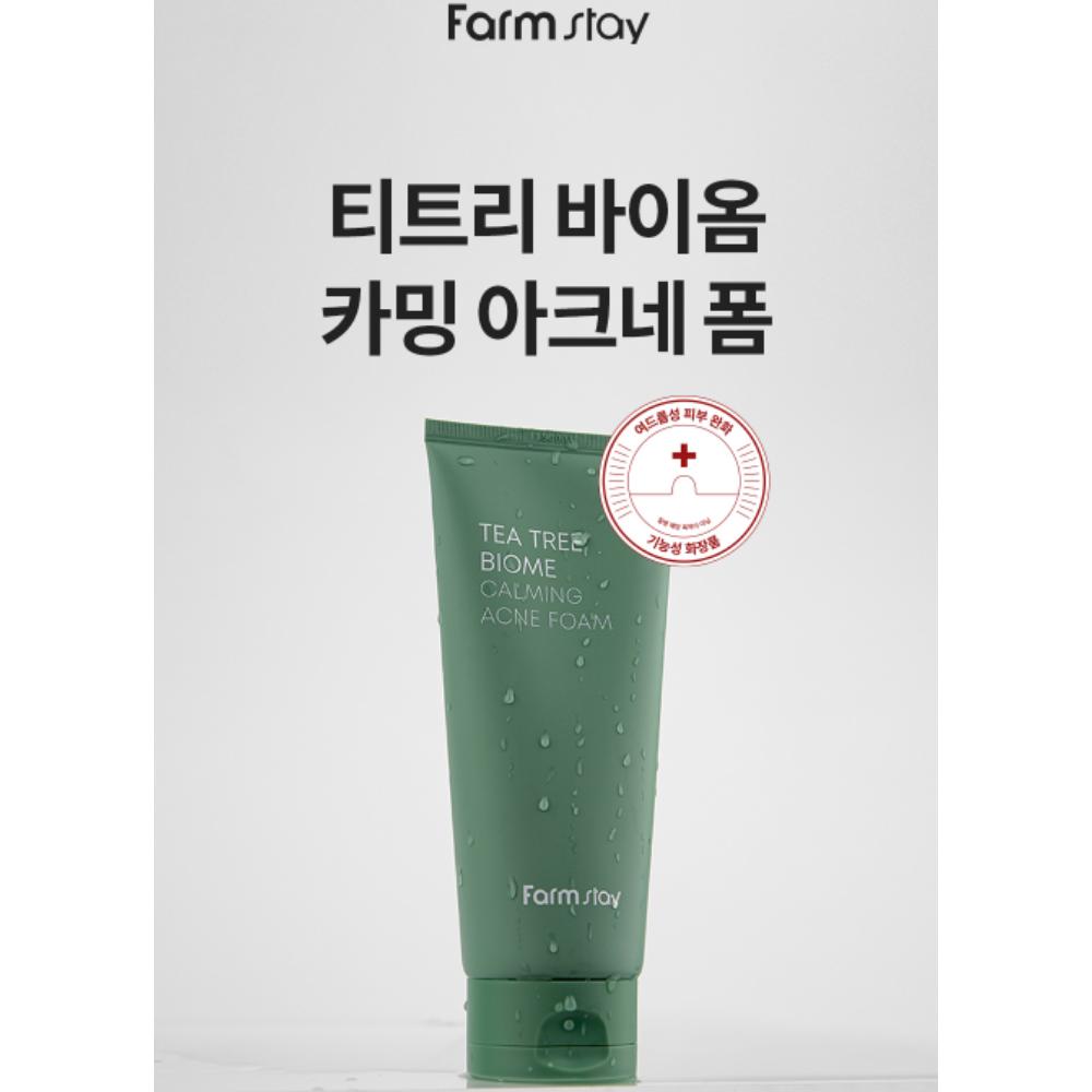 Farm Stay Tea Tree Biome Calming Acne Foam Cleanser 180ml – Low-Acidity Foaming Cleanser for Oily & Acne-Prone Skin
