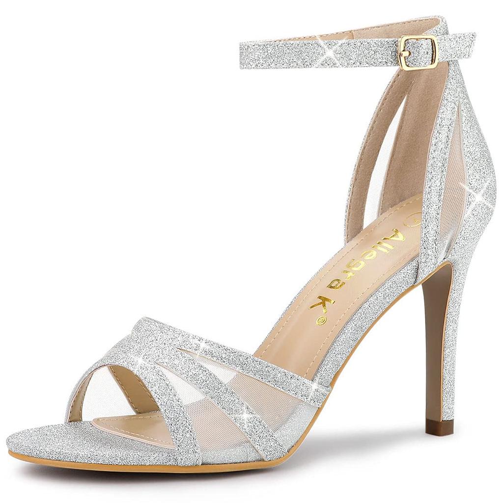 Allegra K Women's Silver Sequined Ankle Strap High Heel Sandals, Size 27.5cm
