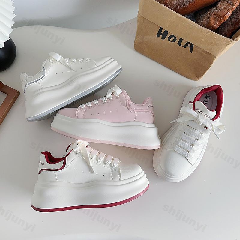 Fashion Women's Platform White Shoes 2025 Spring Autumn Height Increase Student Board Shoes Comfortable Fashion Cross Tied Casual Shoes