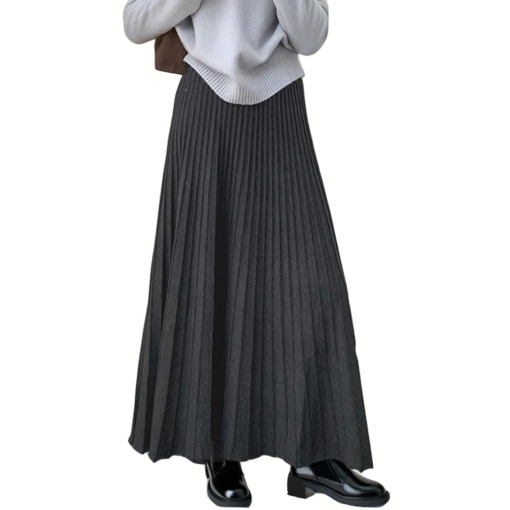 Knit Long Maxi Elastic Loose Perfect for Everyday and Winter [saliwind] Women's Skirt, Pleated, Length, Waist, A-Line, Flared, Fit, Simple, Stylish,