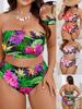 2026 European & American Plus Size High Waist Floral Bikini with Detachable Straps
