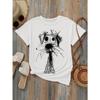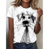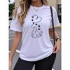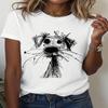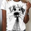 Women's Casual Round Neck T-Shirt with Hand-Drawn Puppy Doodle Print, Short Sleeve Summer Top