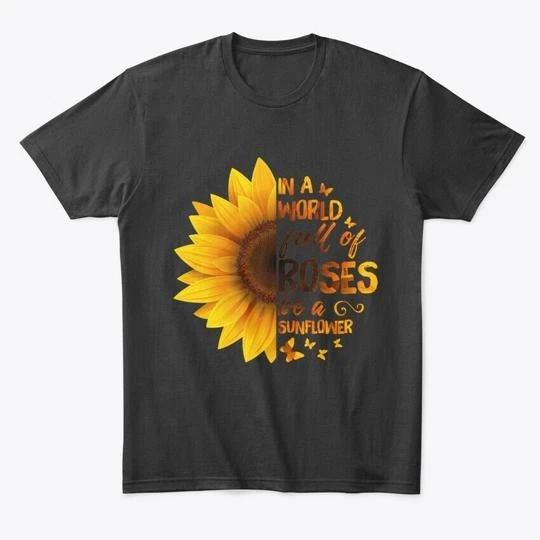 In A World Full Of Roses Be Sunflower T shirt Made in the USA Size S to 5XL