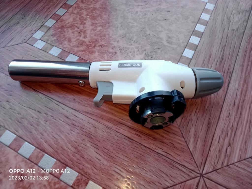 Buse. Pistolet métallique pour cartouche de gaz, arrivé en bon état. L'allumage piézoélectrique fonctionne correctement, se fixe solidement à la cartouche, le jet de combustion ne s'interrompt pas, il est possible de régler le débit de gaz pour augmenter la température. Bonne acquisition à tous 🔥👍 !