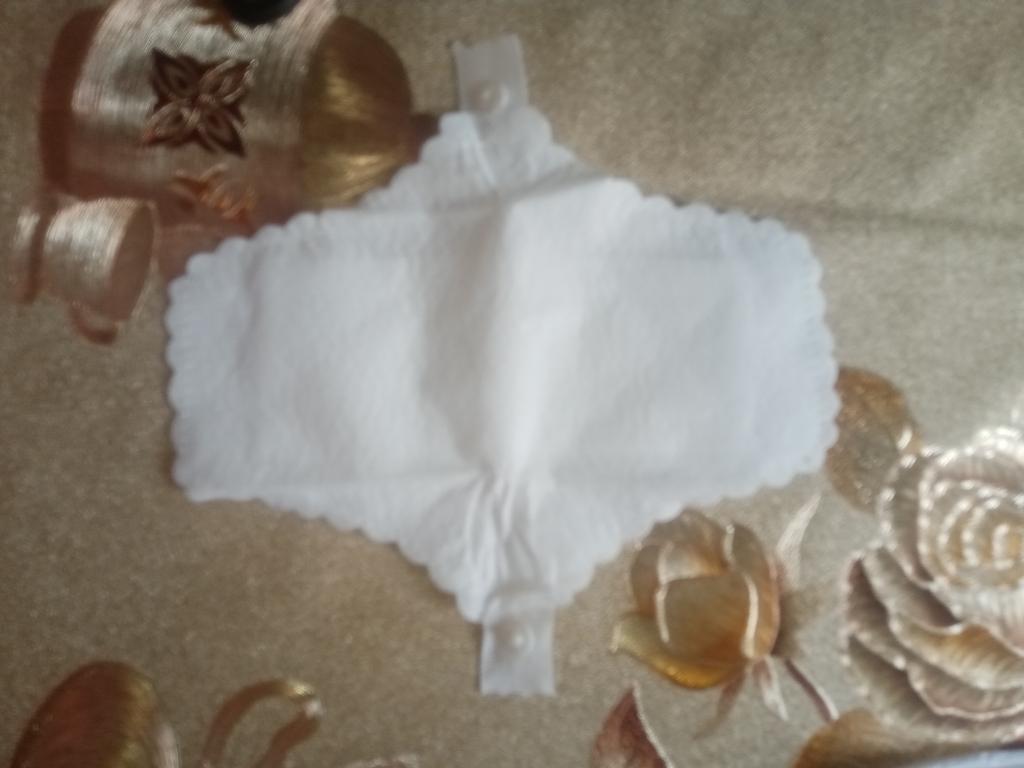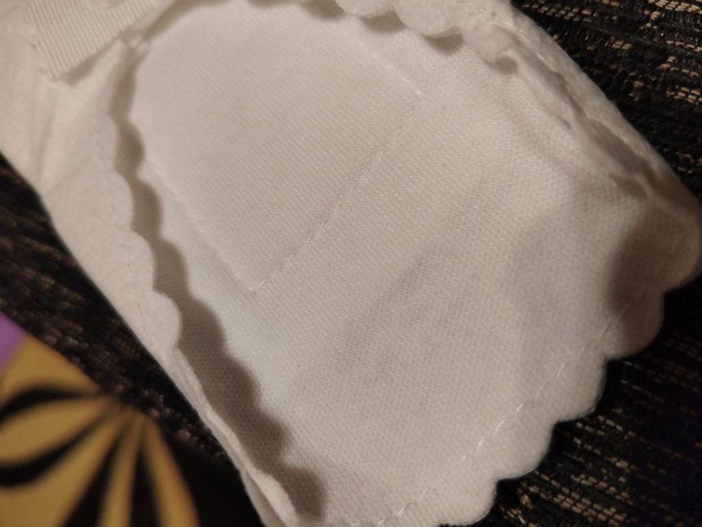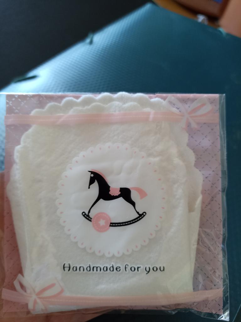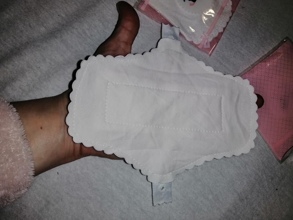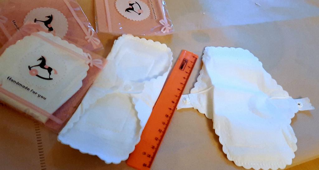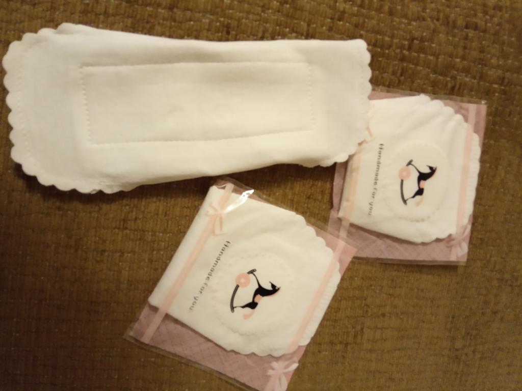 Les tampons réutilisables sont arrivés bien emballés. Ils sont blancs avec un bord dentelé. Ils sont de taille parfaite. De plus, ils ne sont pas trop gras.
