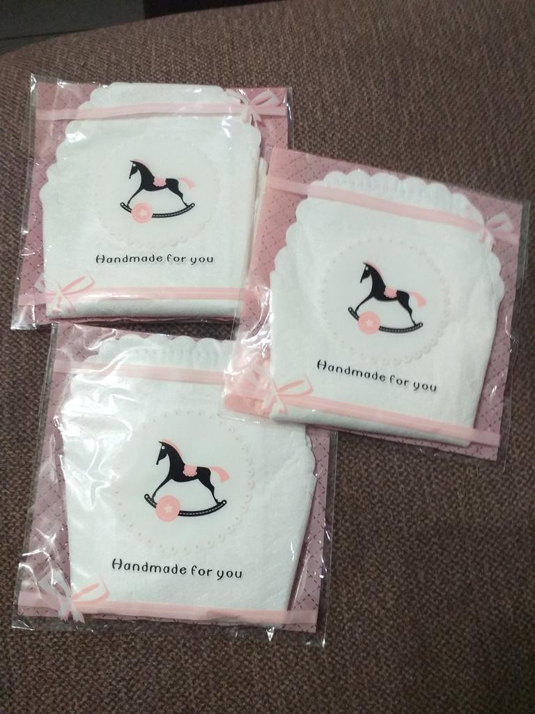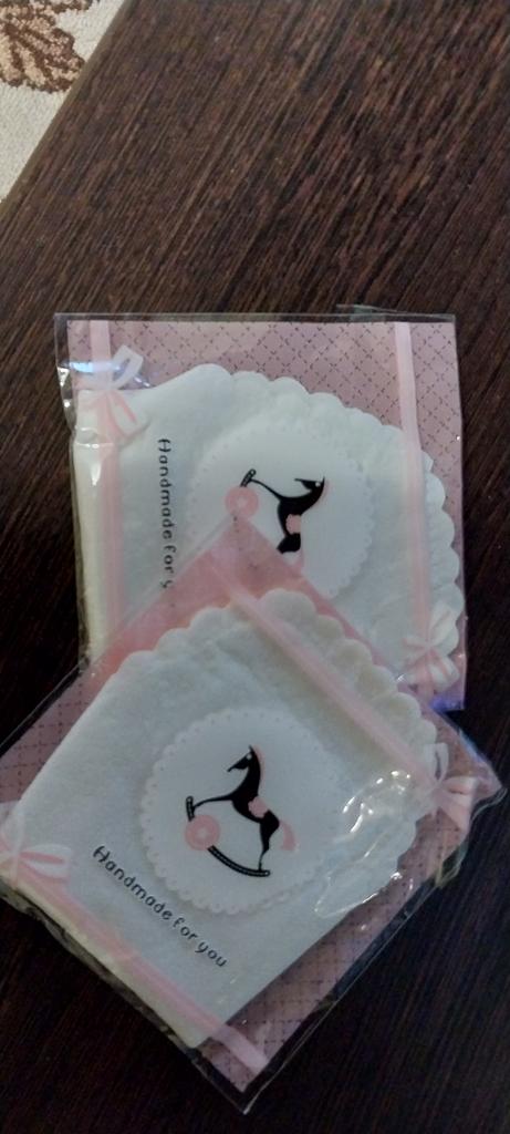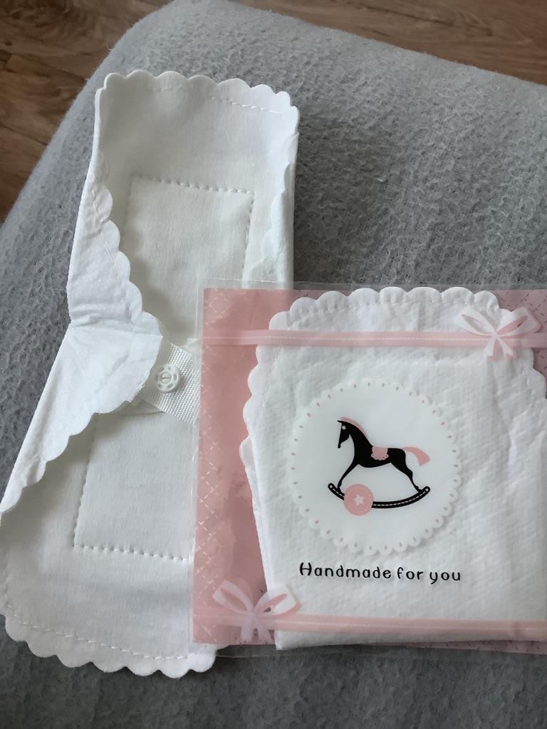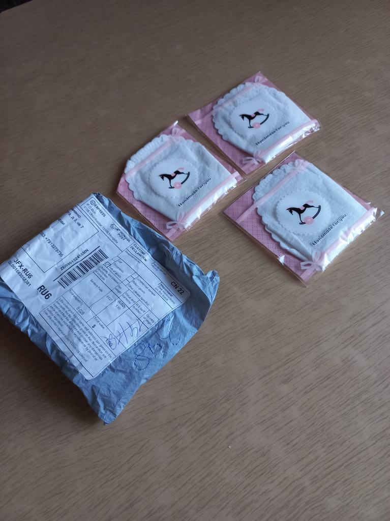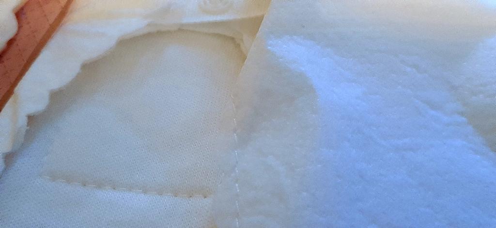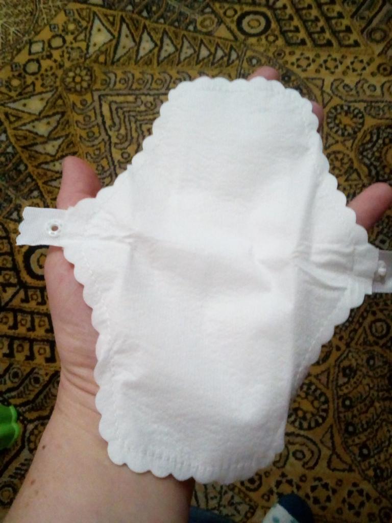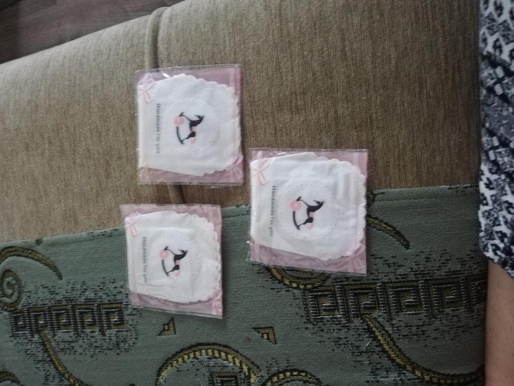 Les tampons réutilisables sont arrivés bien emballés. Ils sont blancs avec un bord dentelé. Ils sont de taille parfaite. De plus, ils ne sont pas trop gras.