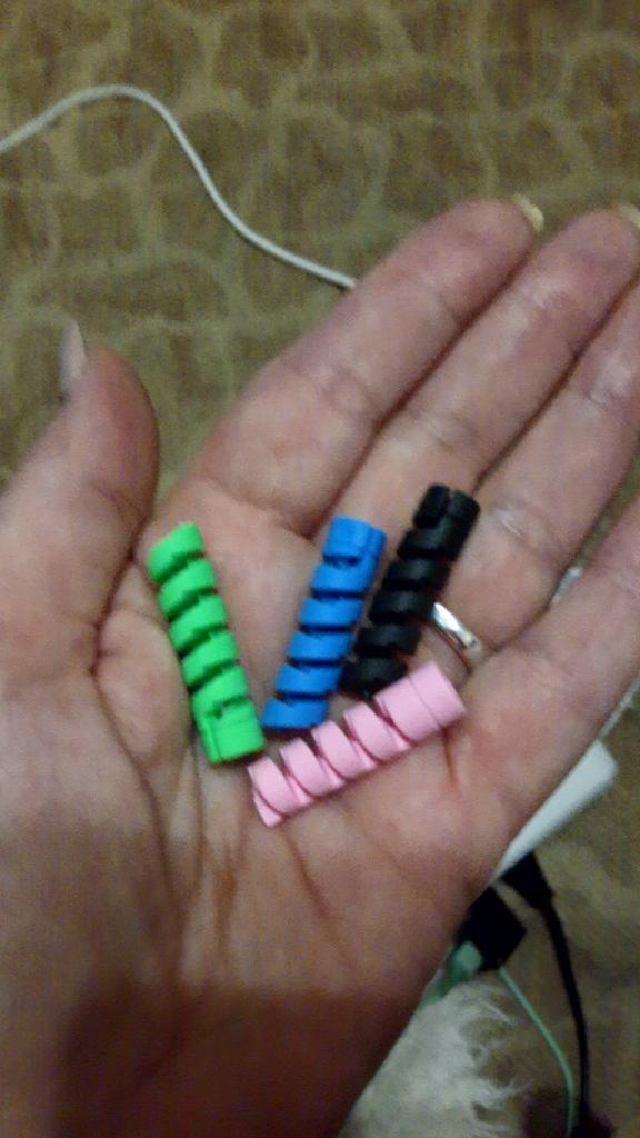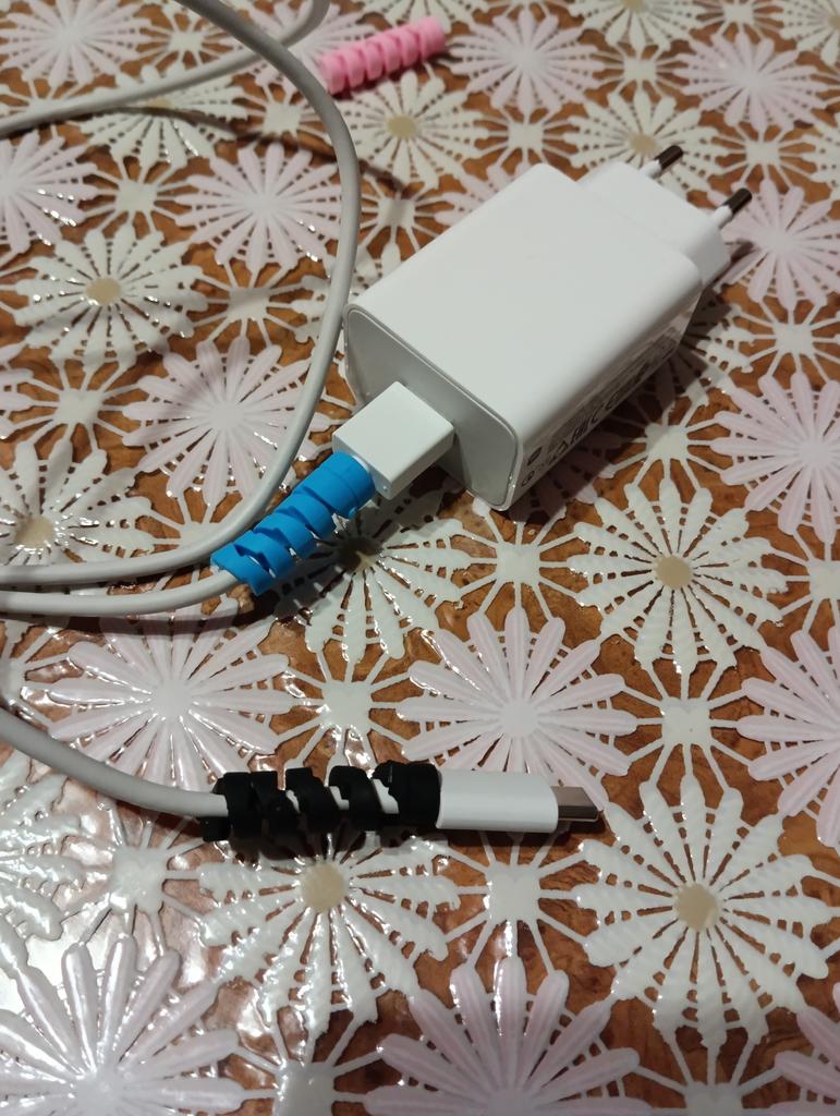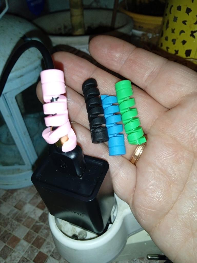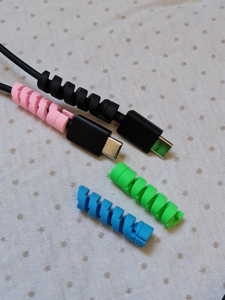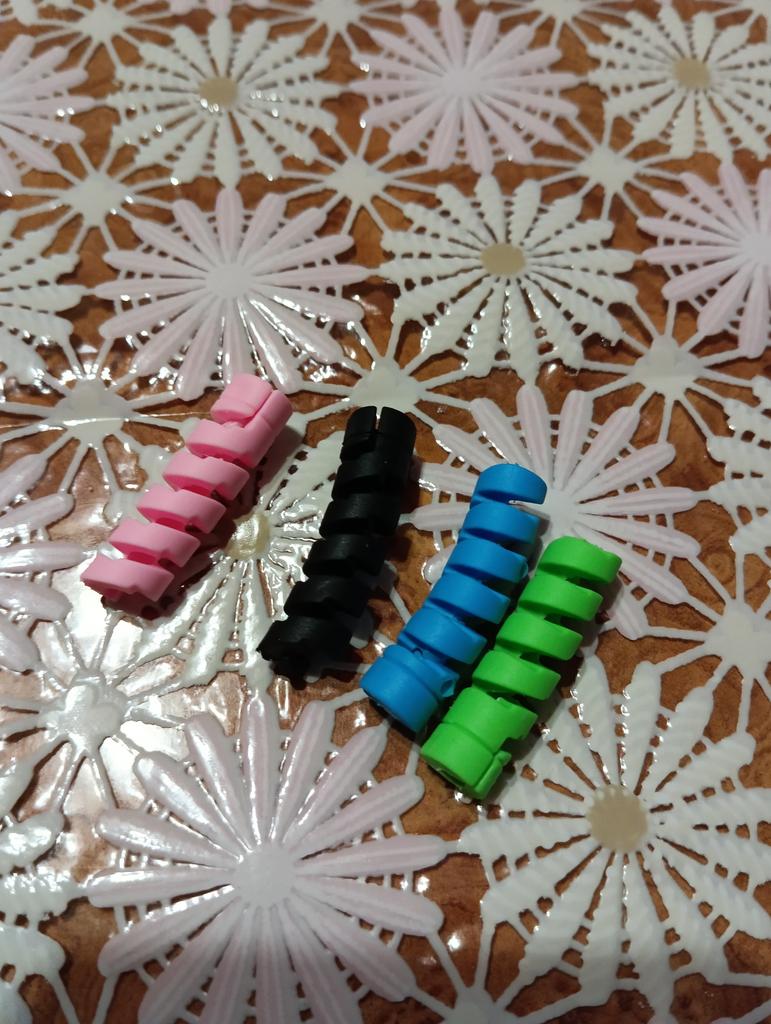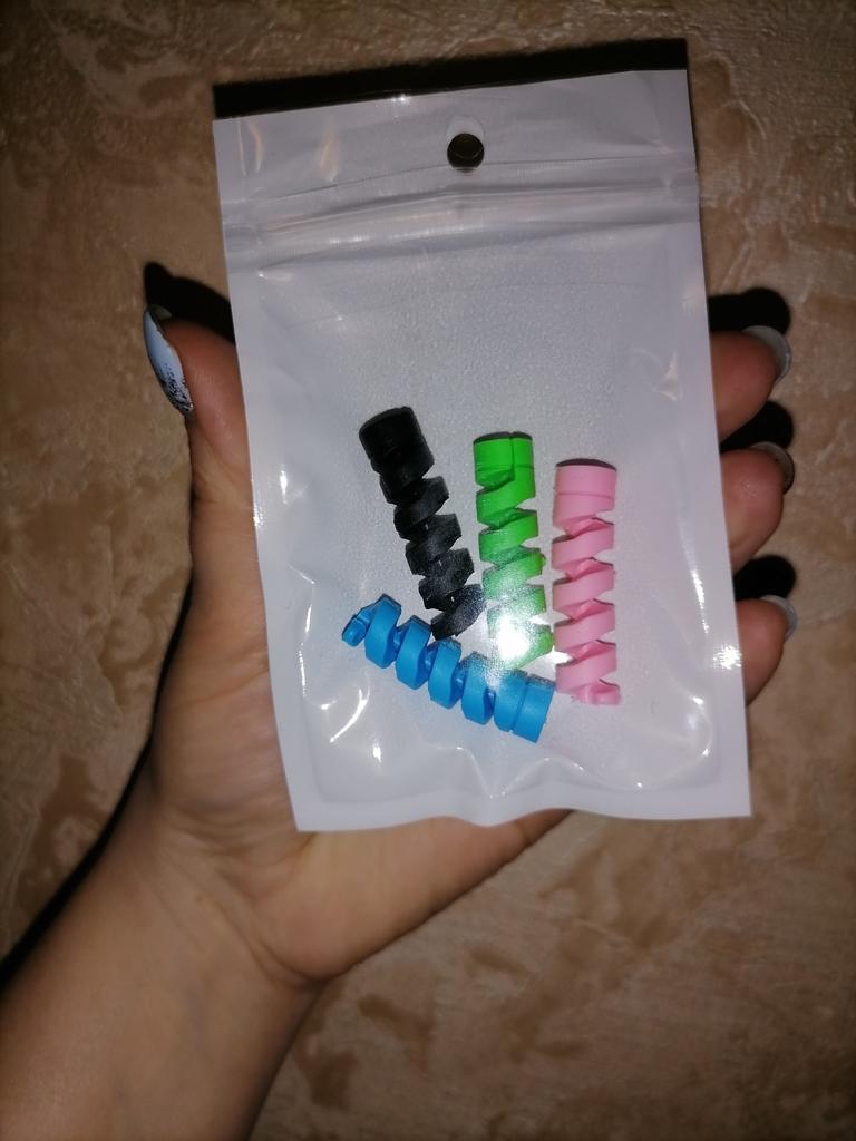 Spirale de protection de prise ✨ Ils viennent en quatre couleurs différentes. Ils sont très élastiques, fabriqués en silicone de haute qualité. Ils s'enroulent autour du câble du chargeur de votre téléphone ou de votre ordinateur portable pour empêcher le câble de se casser. C'est un produit très utile, vraiment nécessaire pour prolonger la durée de vie de vos appareils électroniques. Je le recommande à 100% Il est arrivé très rapidement, en seulement deux semaines et avec un bon emballage.