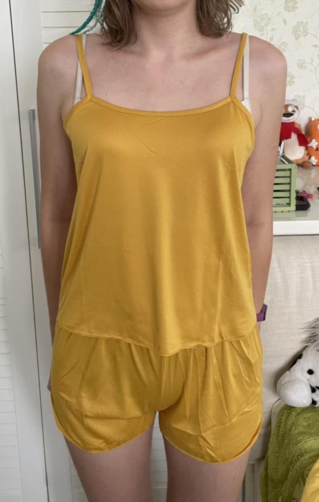 🖤Pyjama très cool pour ce prix (165 UAH) FRpas de mariage) 🖤 La taille convient, même un peu grande (les shorts sont normaux) 🖤Très facile) 🖤Tire bien) 🖤 Les extrémités sont légèrement enroulées (