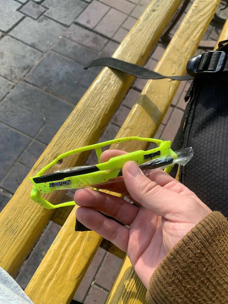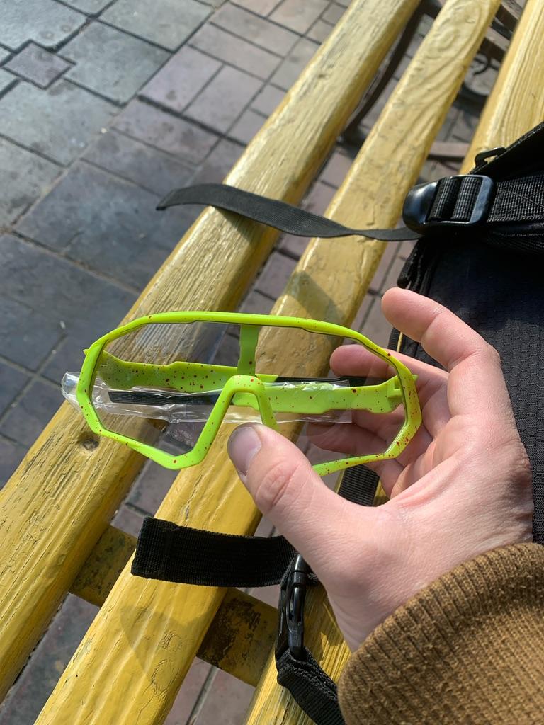 Livraison-presque un mois. La qualité du mandrin est normale, mais les pattes ne sont pas réglables. Le nez est en caoutchouc, il s'adapte donc à différents types de nez, sauf les très larges.. La largeur est de 14,8 cm, la longueur de l'oreille est de 13,5 cm. Le verre photochromique s'assombrit au soleil, résiste bien à l'éblouissement latéral, mais médiocre à l'éblouissement direct. Il ne s'embue pas car il possède des trous d'aération dans la partie supérieure. Il est très pratique de conduire dans différentes conditions (jour, nuit) sans étuis supplémentaires avec vitre de rechange. Pour son prix, c'est une bonne chose pour les amateurs de cyclisme. Satisfait!