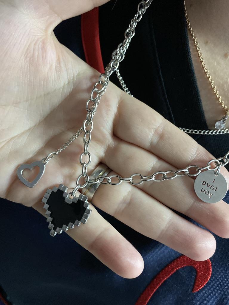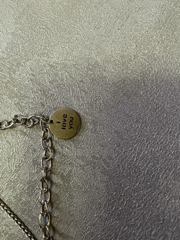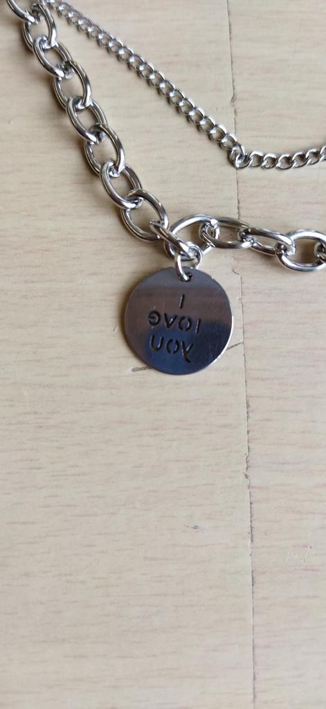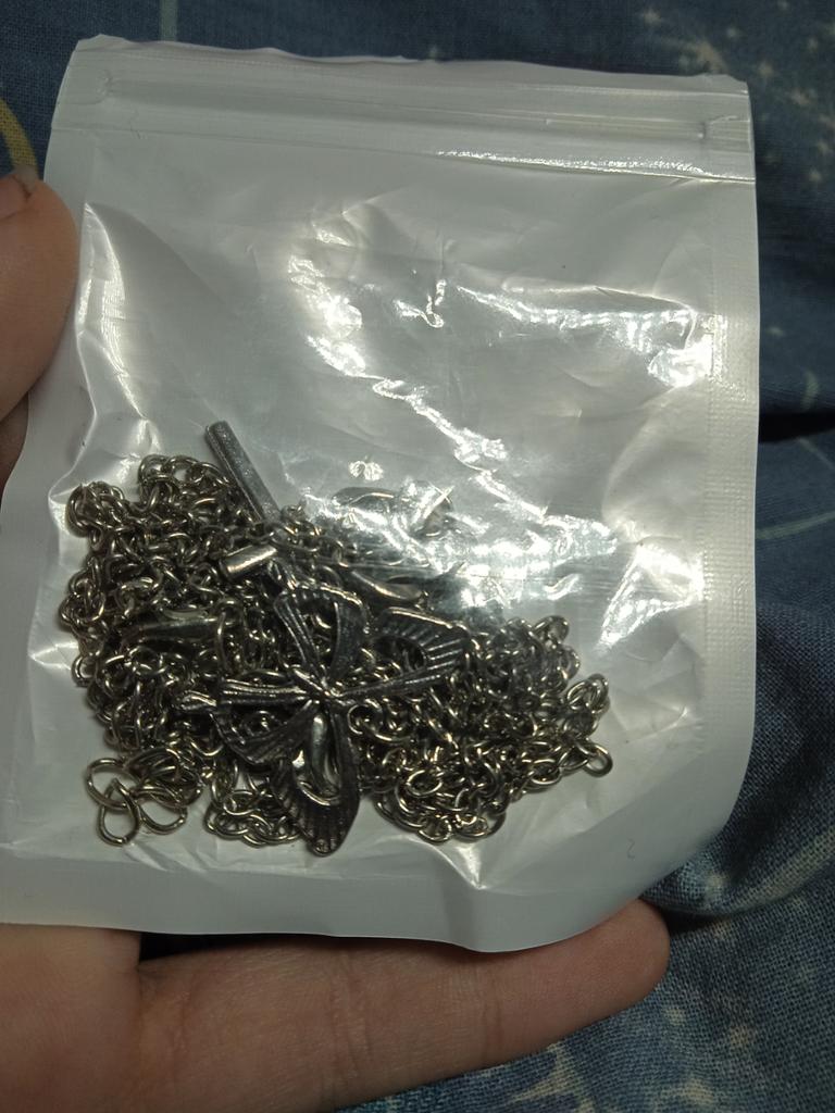 Le pendentif est beau, à la mode pour les adolescents, la chaîne n'est pas fine. Mais - regarde bien les attaches, j'ai failli le perdre, serre plus fort les anneaux, sinon... La chaîne fait 40cm,