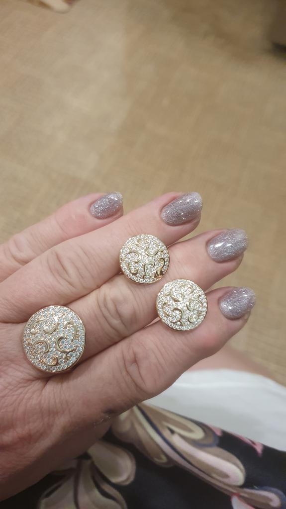 Boucles d'oreilles chics. Prenez-les avec la bague, vous ne le regretterez pas.