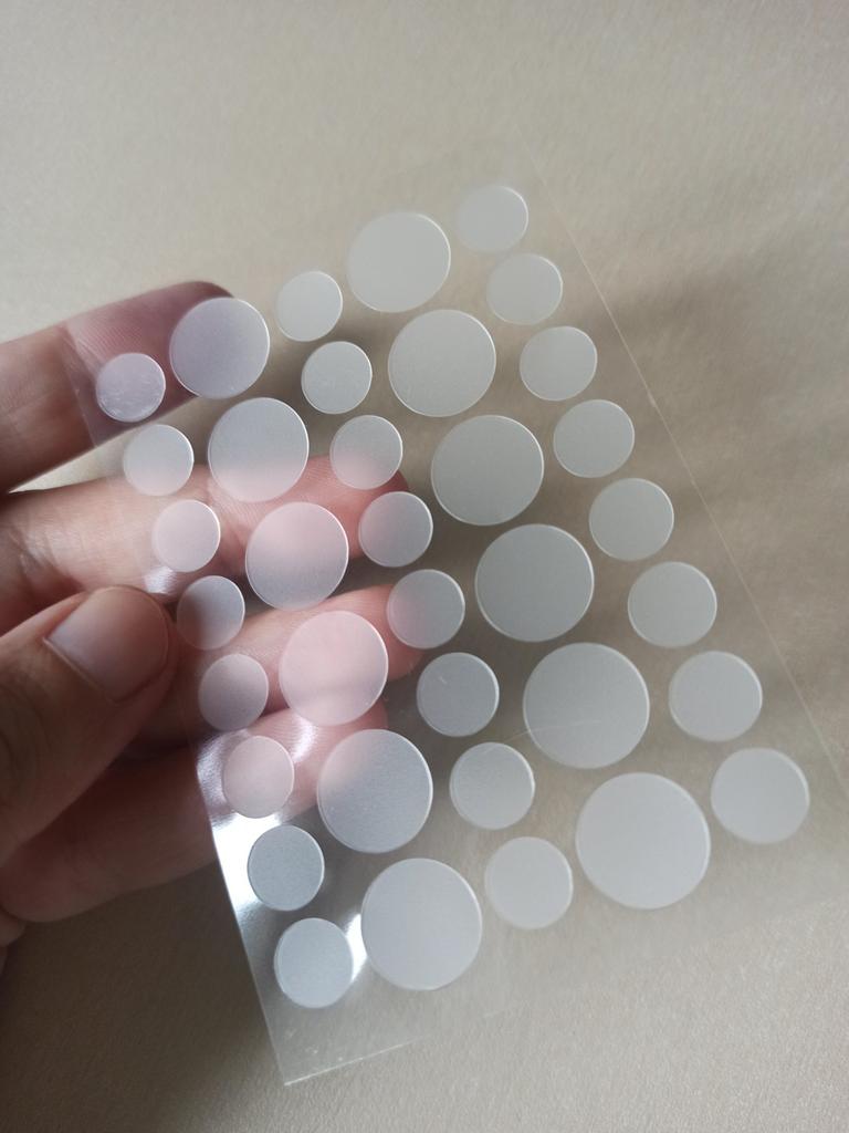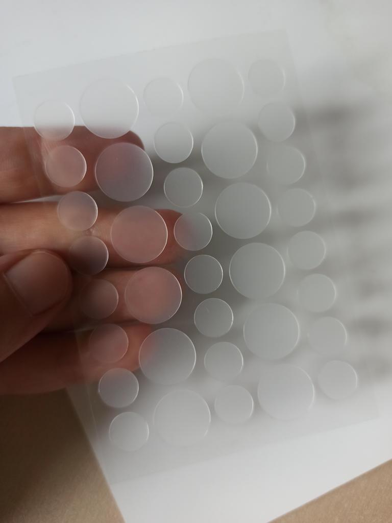 On dirait des cercles en film transparent, j'écrirai plus tard s'ils aident.
