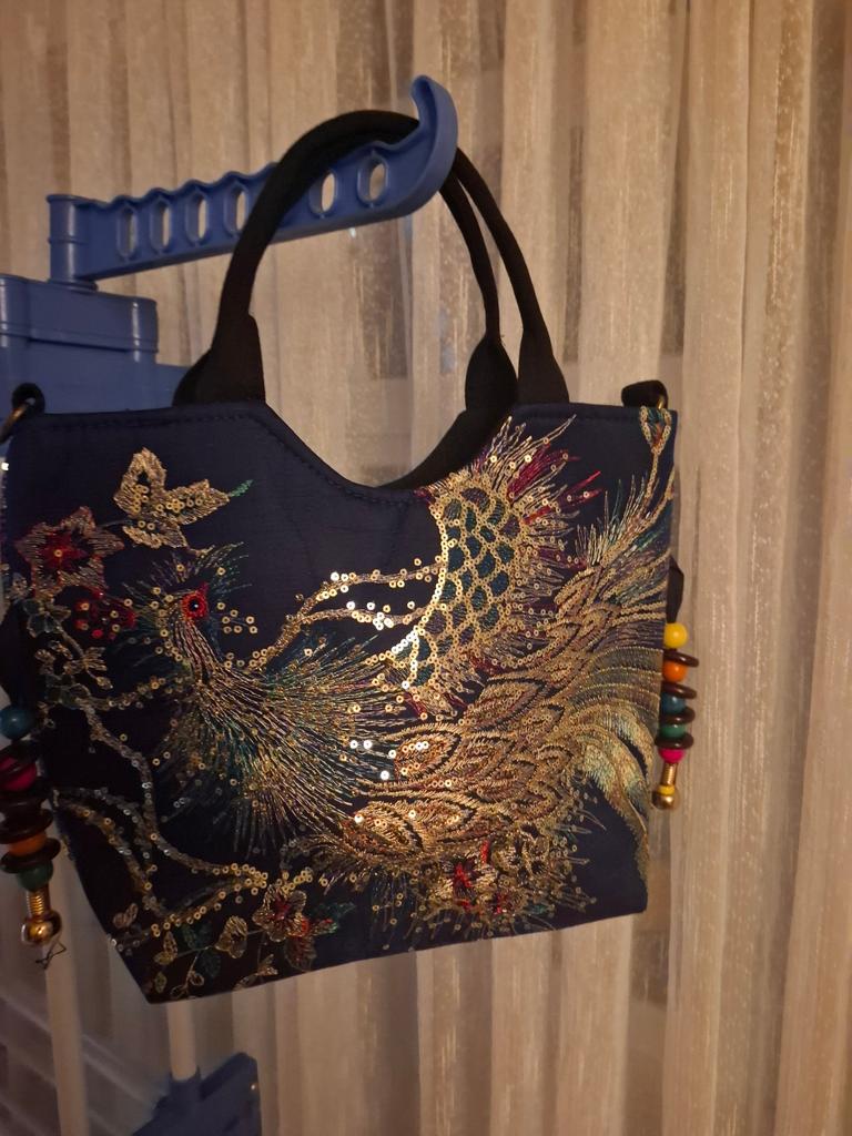 Sac fourre-tout en toile brodé de paon à paillettes brillantes pour femmes, sac à bandoulière de Shopping d'été, sac à main Vintage à ficelle perlée