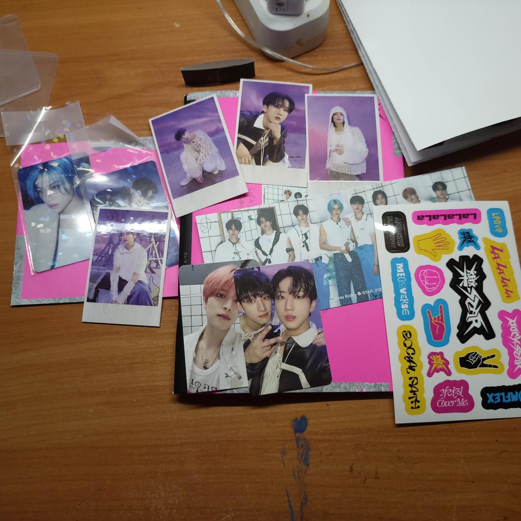 La commande est arrivée en 28 jours, emballée dans un sachet à bulles, mais il semble que rien n'ait été froissé. En cadeau, ils ont mis des cartes lomo de Felix et Jeongin, deux protections et un coupon de réduction. Et pour une raison quelconque, au lieu d'une carte photo, ils en ont mis deux, c'est la première fois...