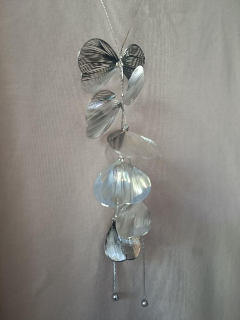 Oh, quel magnifique collier! La chaîne est fine, fragile.....la longueur est réglable. Les ailes elles-mêmes brillent.